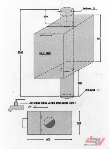 Pēc vajadzības tvertnes iekšpusē var iemetināt dūmvada cauruli.