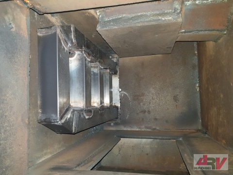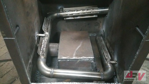 Tad sākumā "čūsku" neliek, krāsnī ir iemontēts noņemams vāks - plāksne, kas pieskrūvēts ar skrūvēm. Pēc vajadzības vāku var noņemt un krāsnī var ielikt "čūsku".