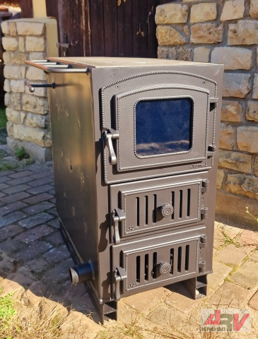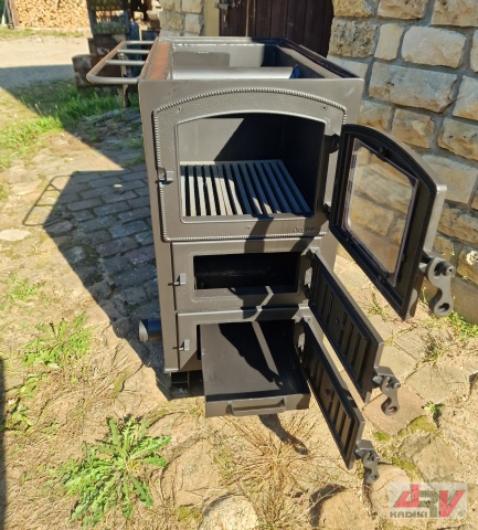 Virspusē novieto čuguna virsmu ar noņemamiem riņķiem vai slēgtu bez riņķiem. Var iebūvēt cepeškrāsni.